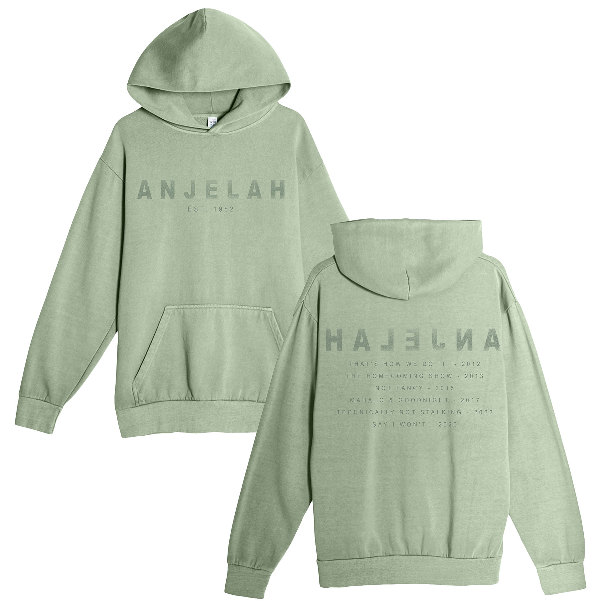Anjelah Hoodie in Green with front and back print.